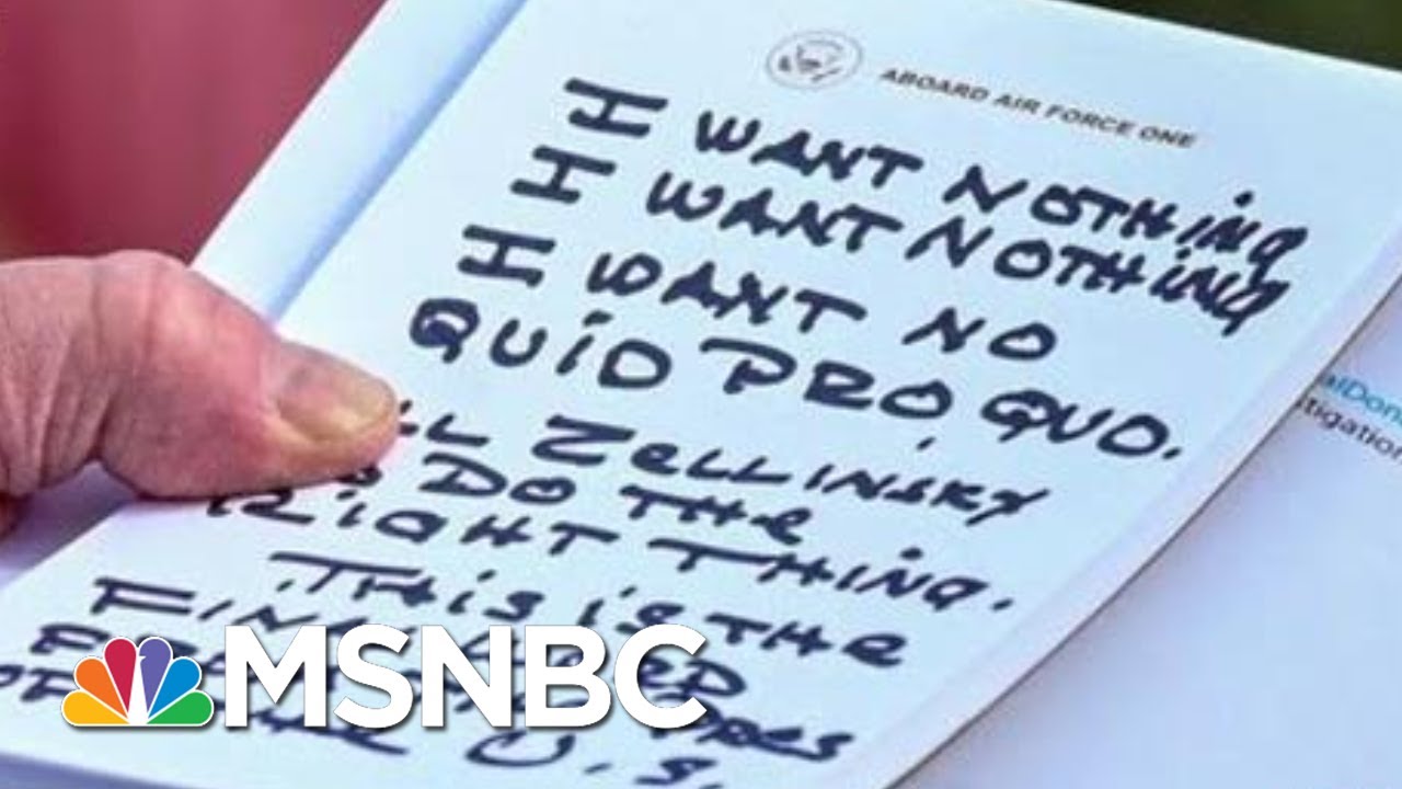 The president on Wednesday stopped to speak to reporters outside the White House amid Gordon Sondlan's testimony in Congress, where he readi from hand-written notes insisting he did not want a 'quid pro quo.' Aired on 11/21/19. » Subscribe to MSNBC: